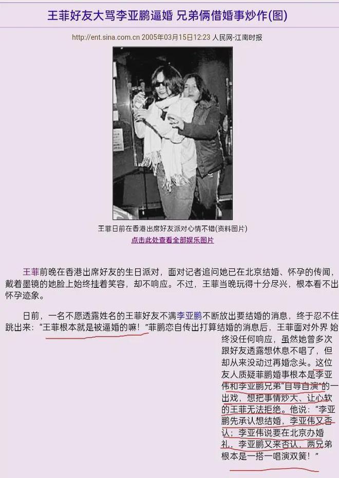 只不过刘嘉玲是助攻,王菲其他好友却看不上李亚鹏。在李亚鹏不断放出要和王菲结婚的消息后,一位好友忍不住跳出来怒斥李亚鹏逼婚。称王菲本来没动过再婚的念头,质疑是李亚鹏兄弟自导自演一出戏——李亚鹏先承认要结婚,李亚伟又否认;李亚伟说要在北京办婚礼,李亚鹏又否认。